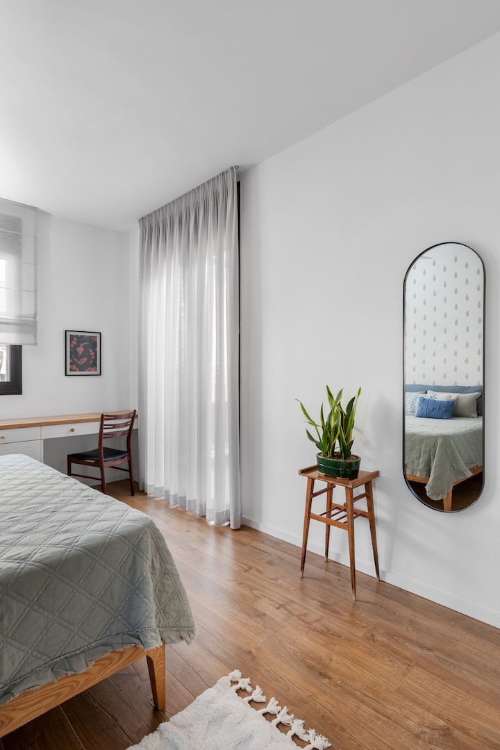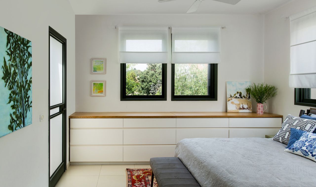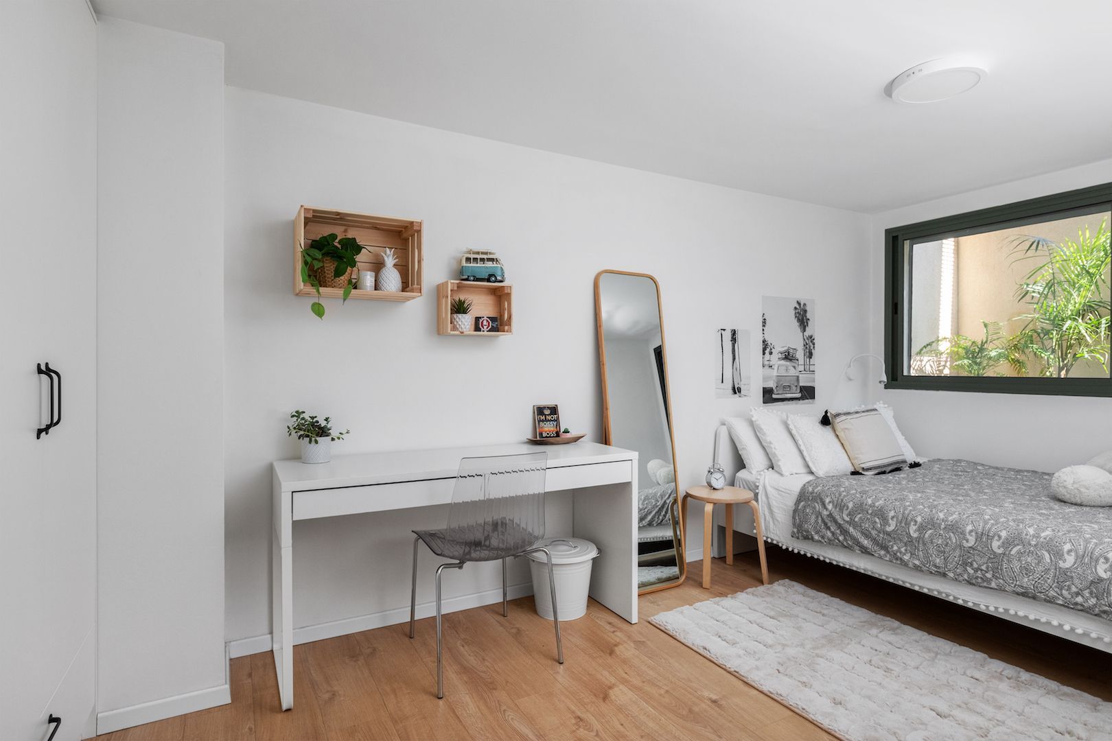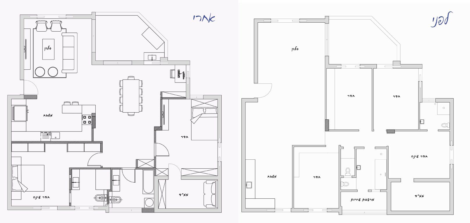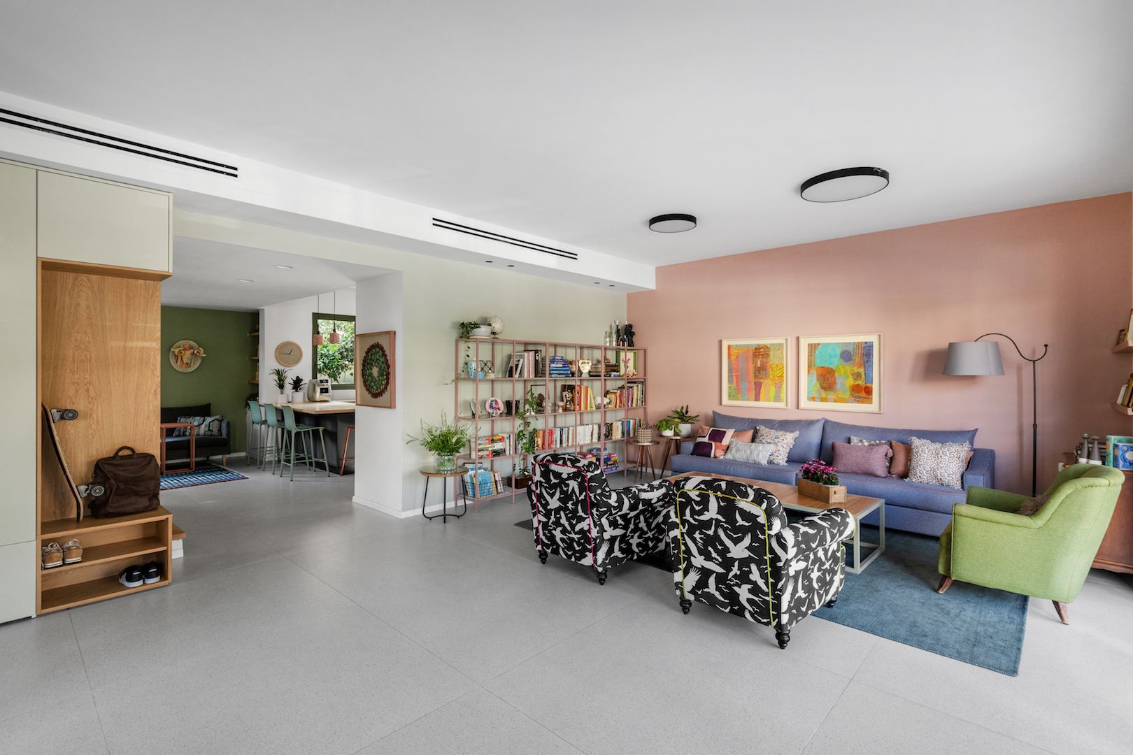 דירת חמישה חדרים בבניין ישן שהפכה לדירת שלושה חדרים מפנקת ומותאמת במיוחד לדרישותיה של הדיירת.