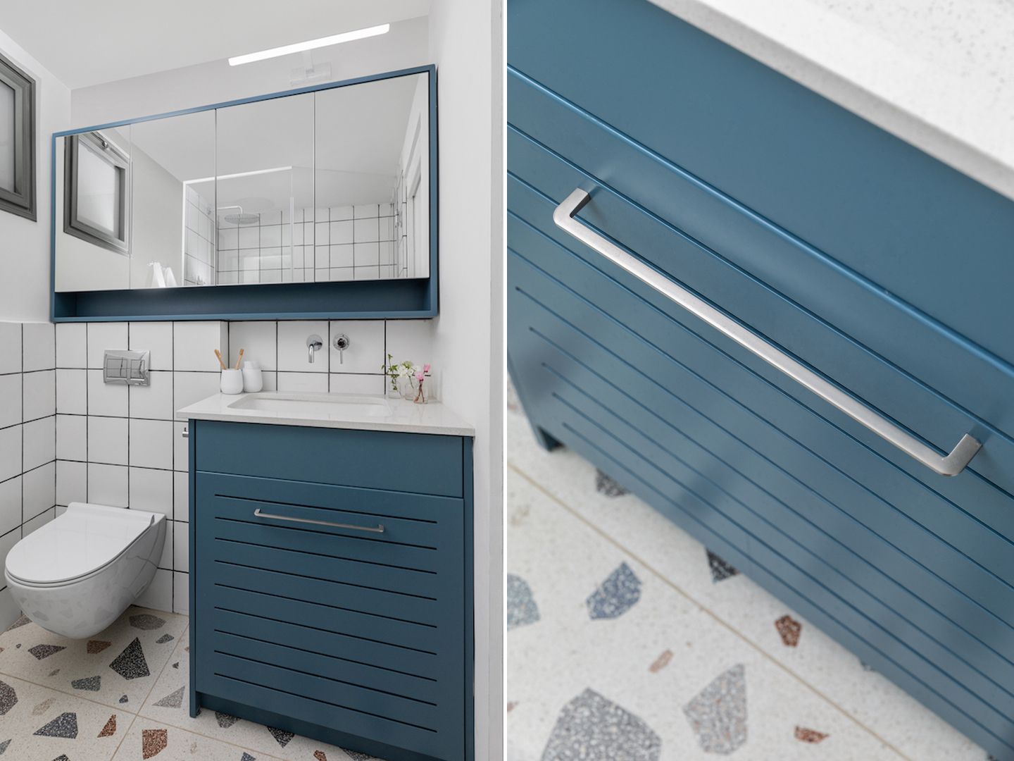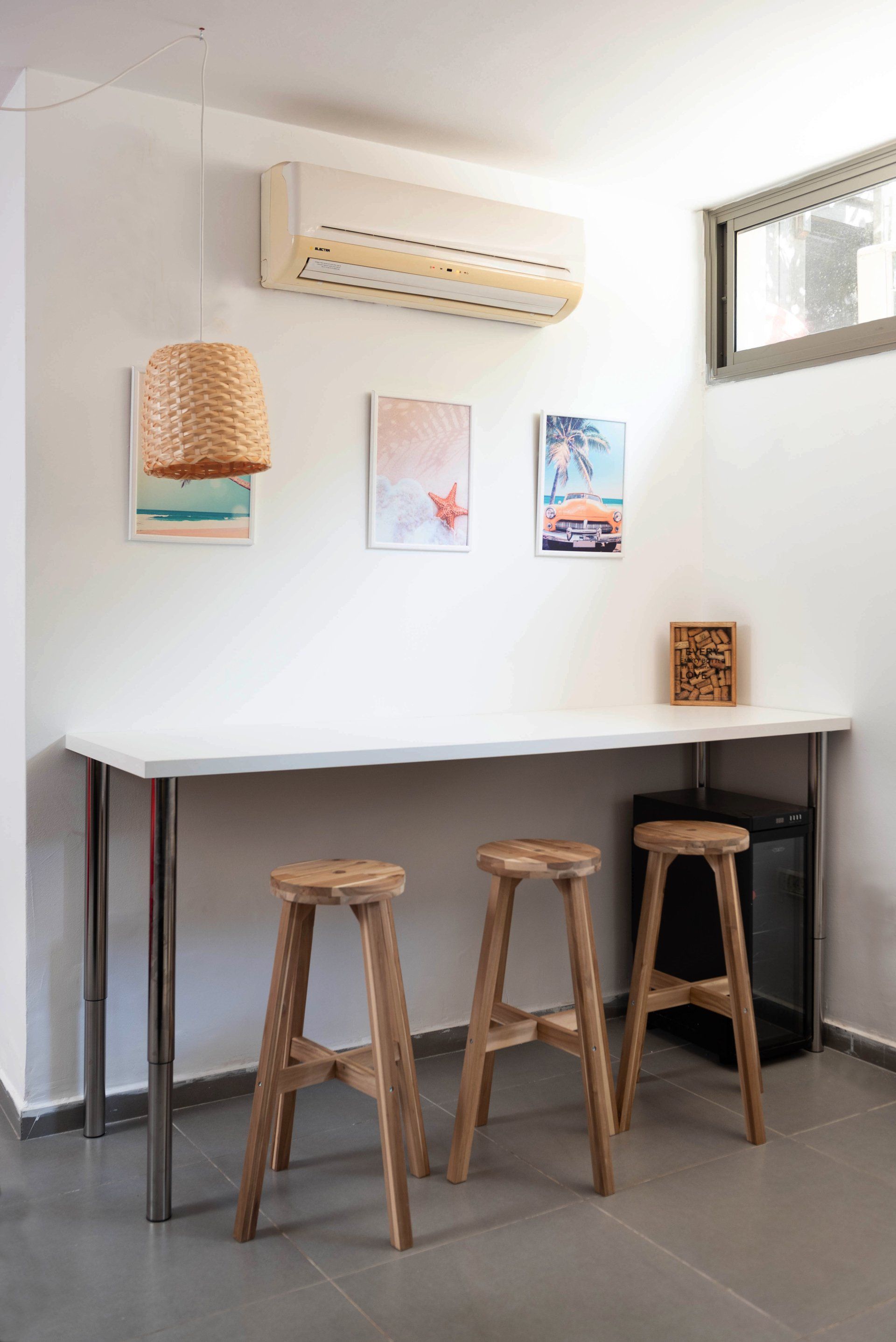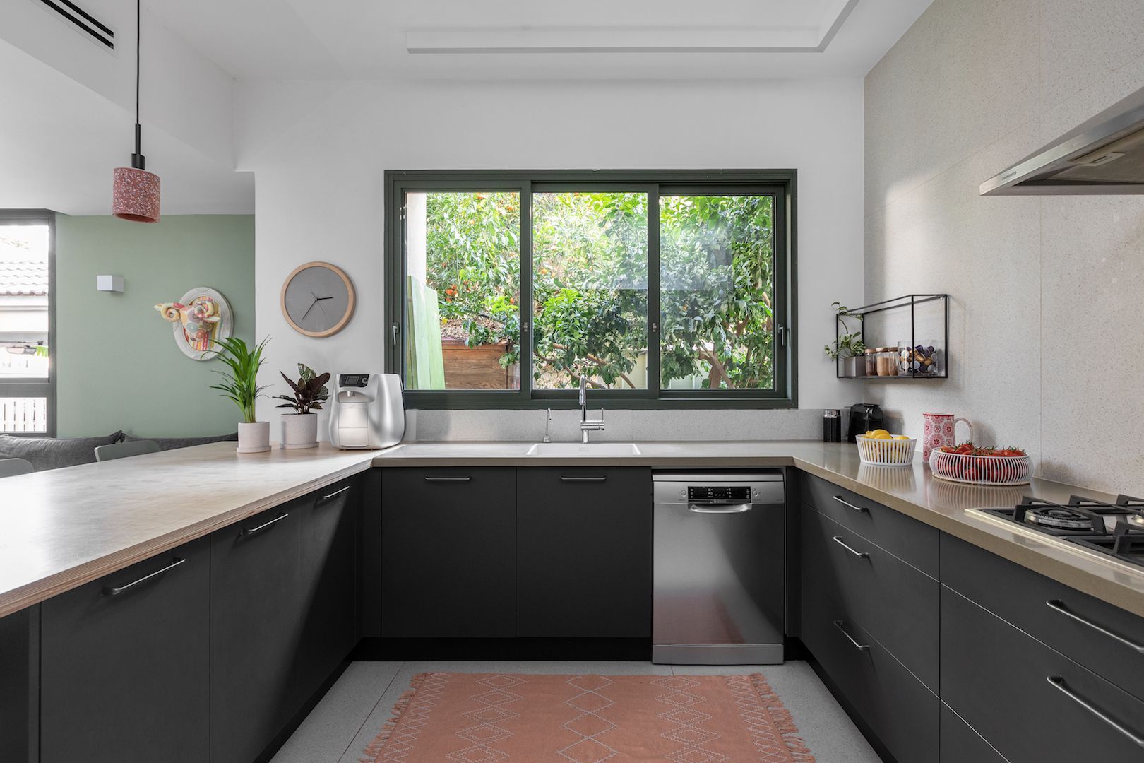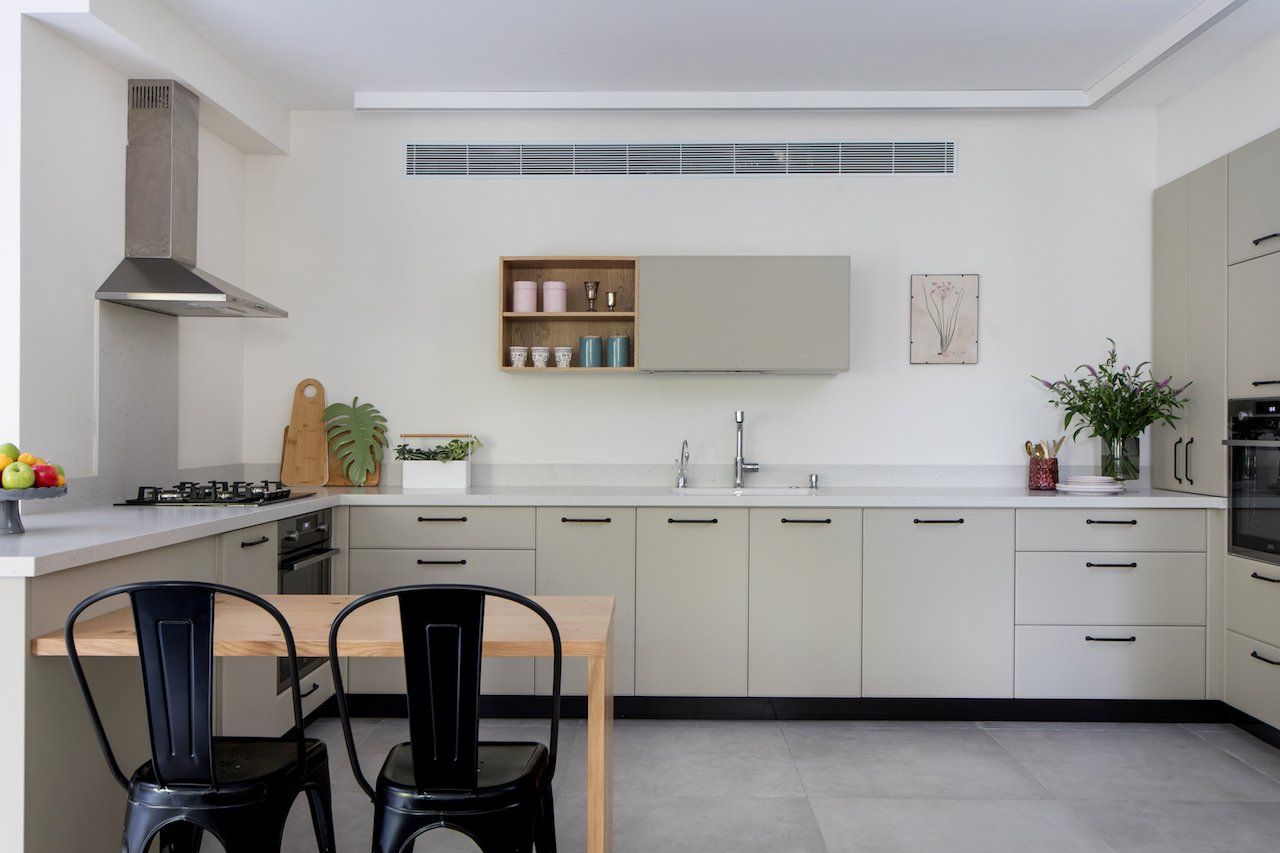 דירה ברעננה – זוג צעיר עם תינוקת בבטן. דירה בבניין ישן שעברה שיפוץ מלא שכלל חלוקת חלל חדשה, בחירת חומרים והלבשה מלאה.