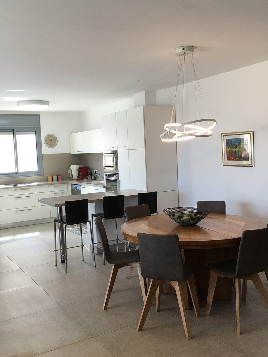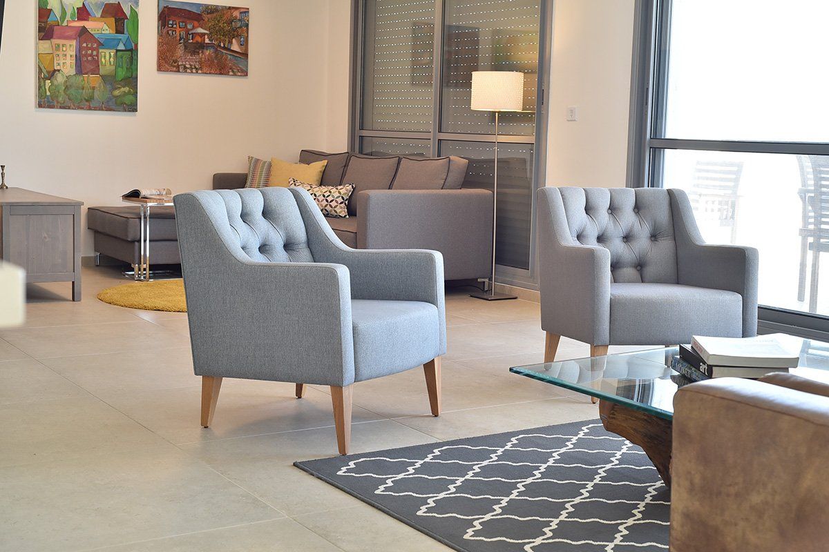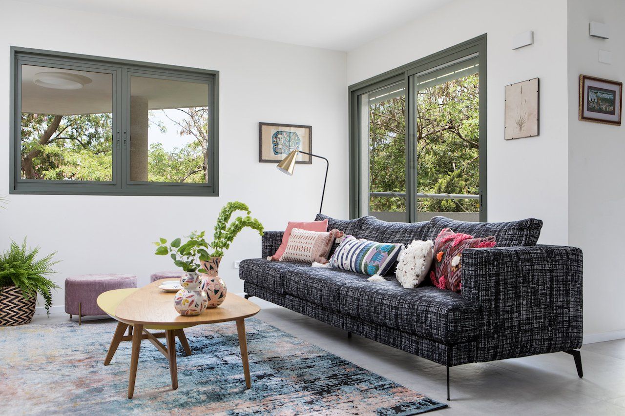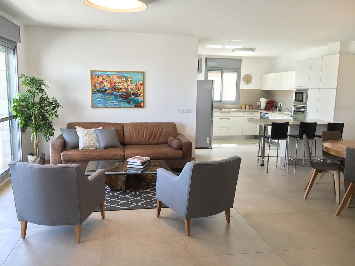 דירת חמישה חדרים בבניין בוטיק בפרדסיה שעברה הלבשה מלאה כולל ריהוט בהתאמה אישית, תאורה, טקסטיל ופרטי אמנות.